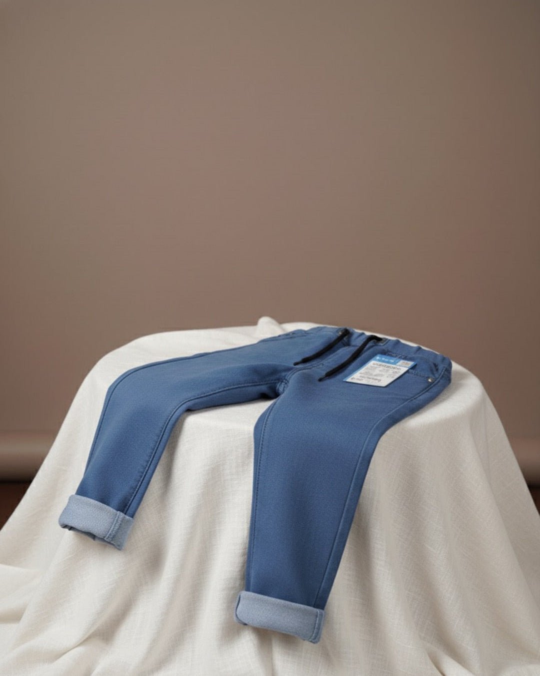 These unisex kids denim pants feature premium TFO denim fabric engineered for exceptional softness and all-day comfort. The superior stretch technology allows unrestricted movement, adapting seamlessly to active play and growth spurts. Finished in sophisticated organic tones, the relaxed fit flatters every body type while maintaining a refined aesthetic suitable for casual wear and special occasions alike. Durable construction ensures these pants withstand frequent washing, making them a reliable staple in any child's wardrobe.